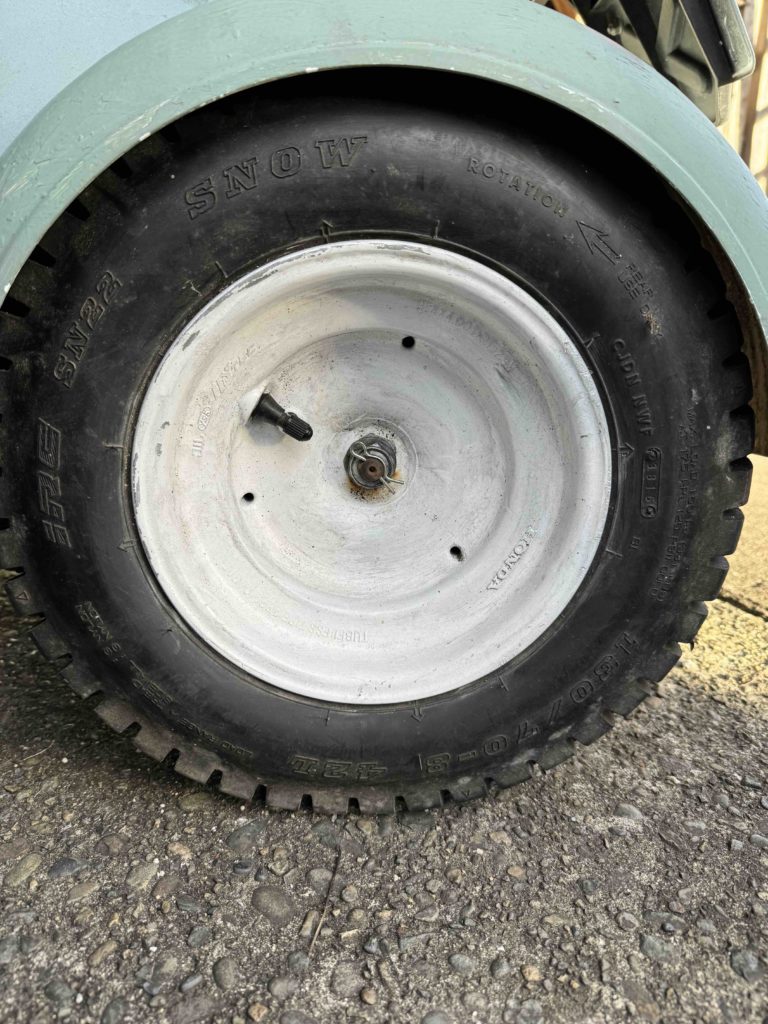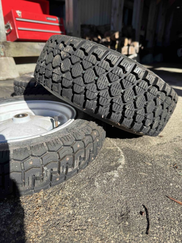 このスパイクタイヤとスノータイヤ(スタッドレスタイヤ)は、ヤフオクでホイール付きの格安で買った記憶がある。