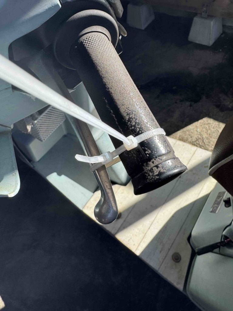 私はいつも一人作業なので、タイラップ(私はどのメーカーのものもタイラップと呼ぶ)で固定する。