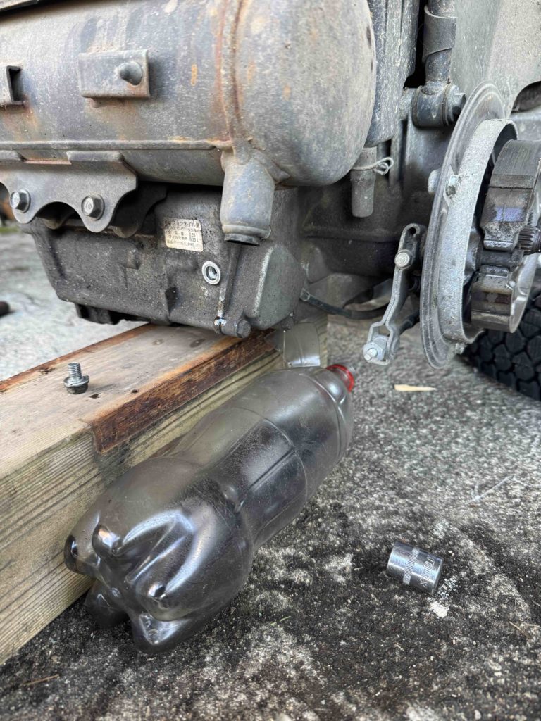 ペットボトルのオイル受けの作り方が間違っているのか、不器用なのか漏らしました。